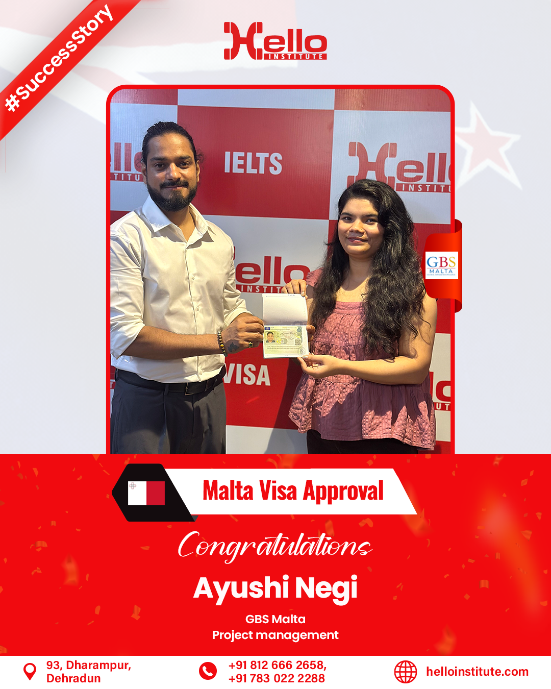 From my IELTS preparation to study visa to UK I was helped by Hello Institute. I am very thankful to Vipin sir who helped me throughout my study visa process. All the teachers and staff are also very helpful and friendly.