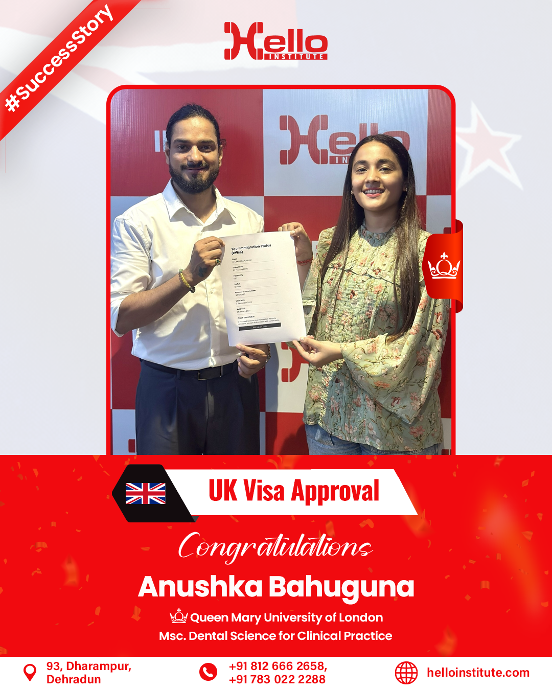 Hello Institute is not just an IELTS coaching centre — we are a full-service study visa agent in Dehradun and abroad visa consultant with a dedicated team of foreign education consultants who have successfully guided students to universities in the UK, USA, Canada, Australia, Germany, France, Ireland, and New Zealand.